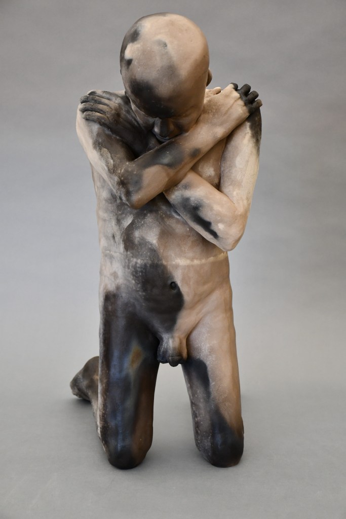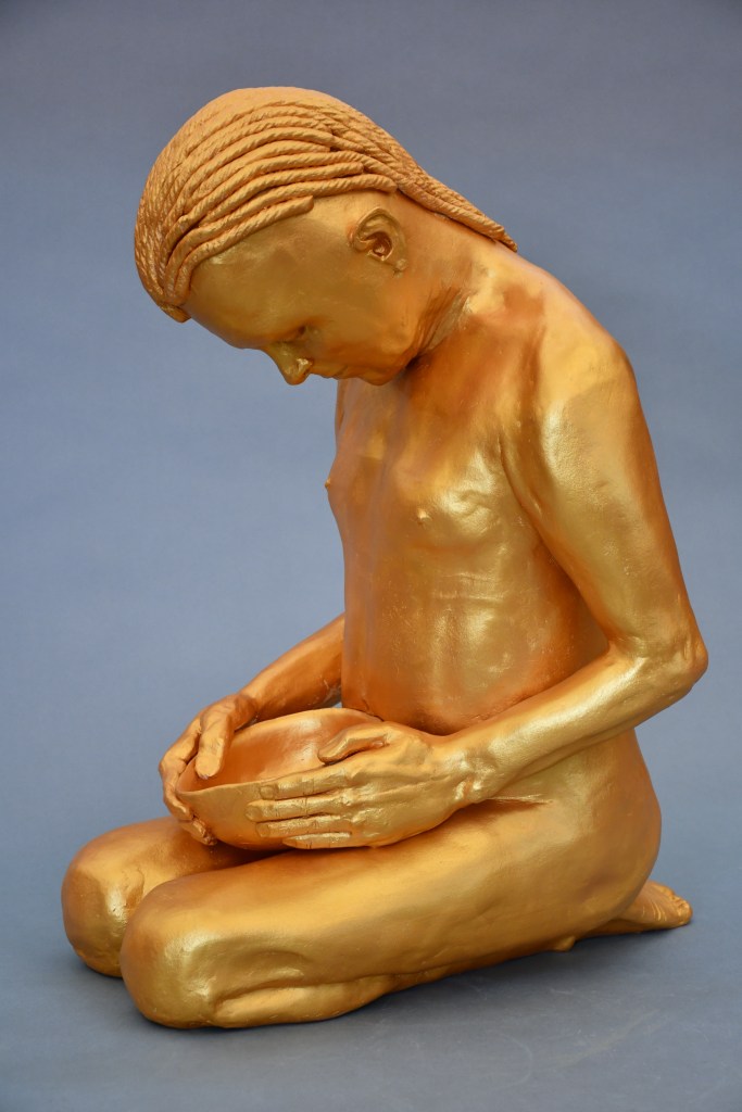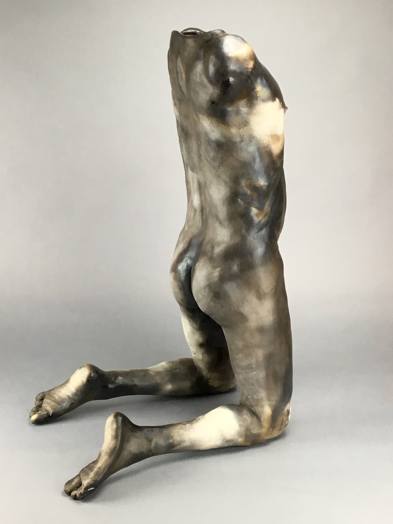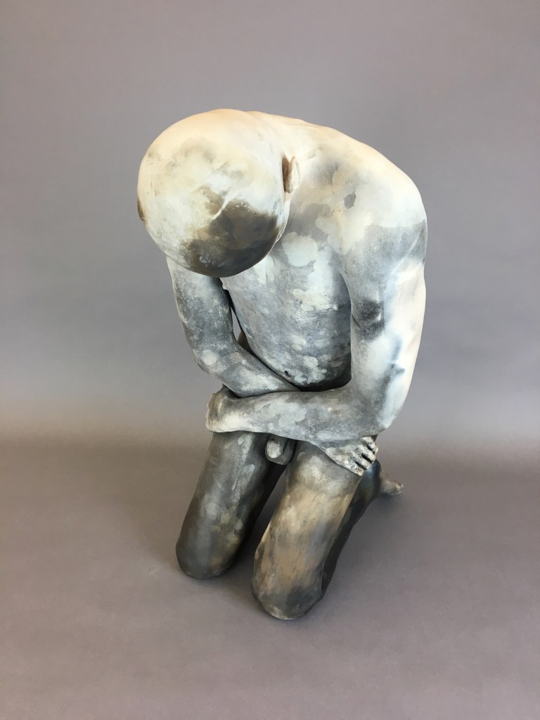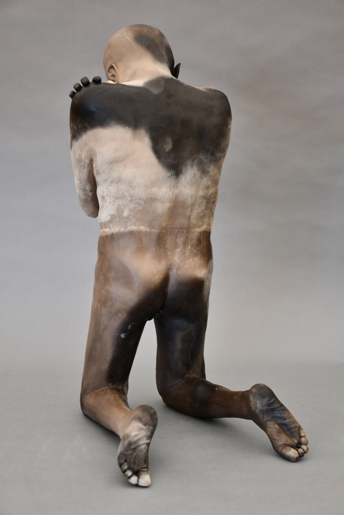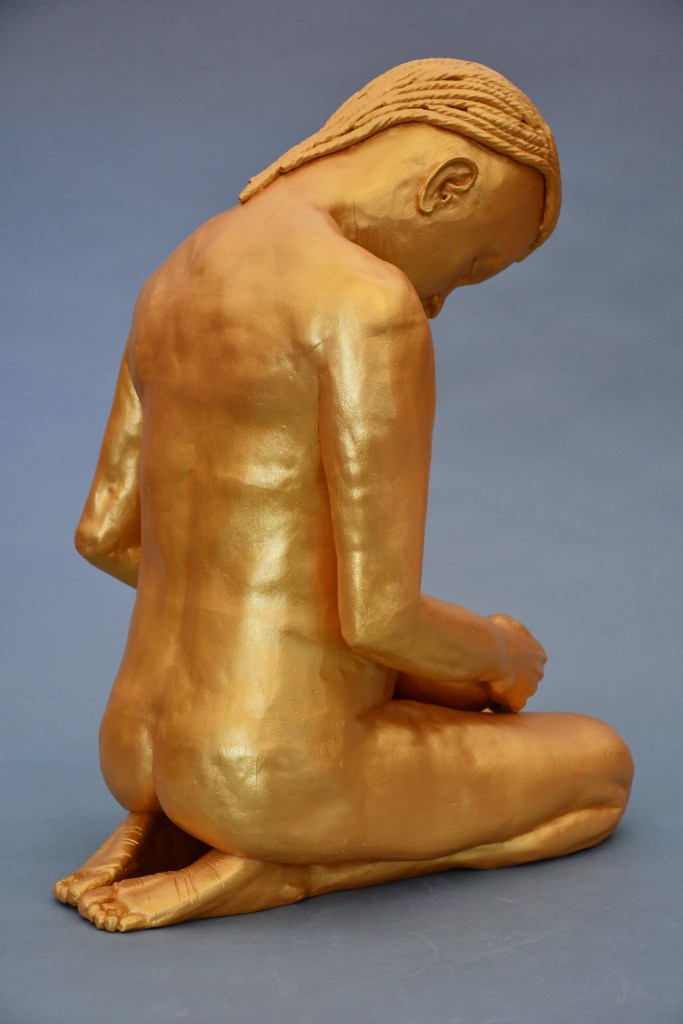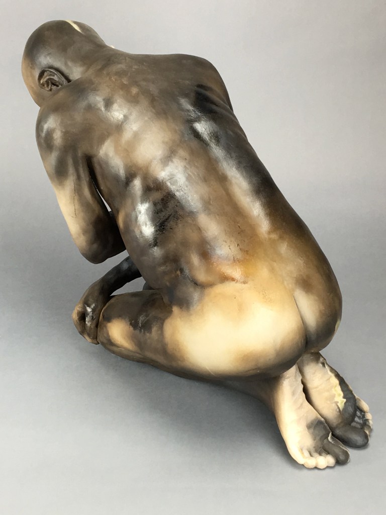Kneeling “The Bowl” (2025) 23″ x 14″ x 18″ “Hiding” (2023) 27″ x 12.5″ x 19″ “Between Incarnations” (2019) 22″ x 12″ x 19″ “Burnt Offering” (2017) 16″ x 11″ x 22″ “Unnamed” (2017) 26″ x 12″ x 17″ “Bare Earth” (2018) 10″ x 20″ x 10″ (SOLD) Jump To: Standing Figures Seated Figures Recumbent Figures Composite Figures Protest Work Reliefs Drawings